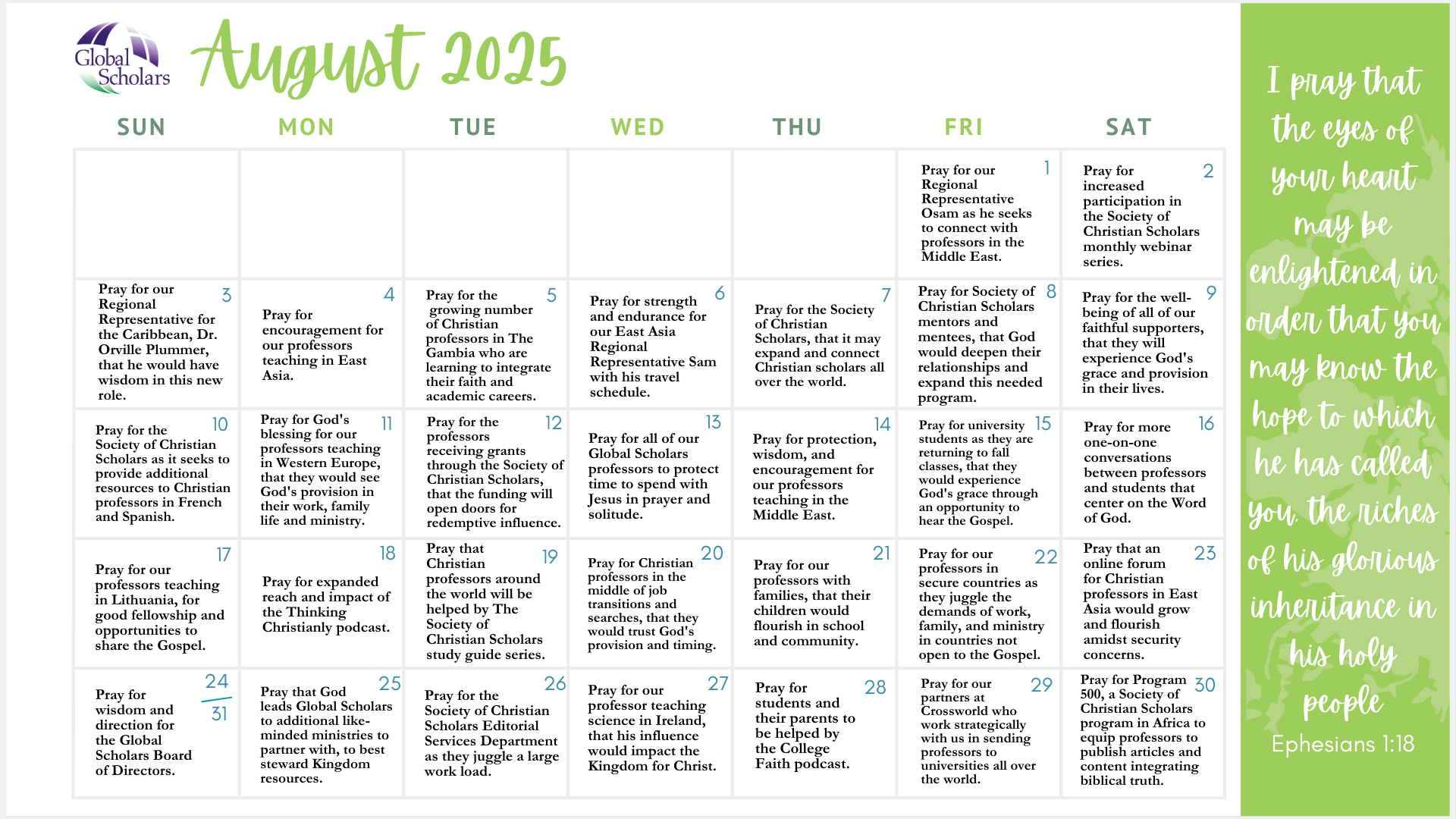 3. Prayer Calendar – August 2025