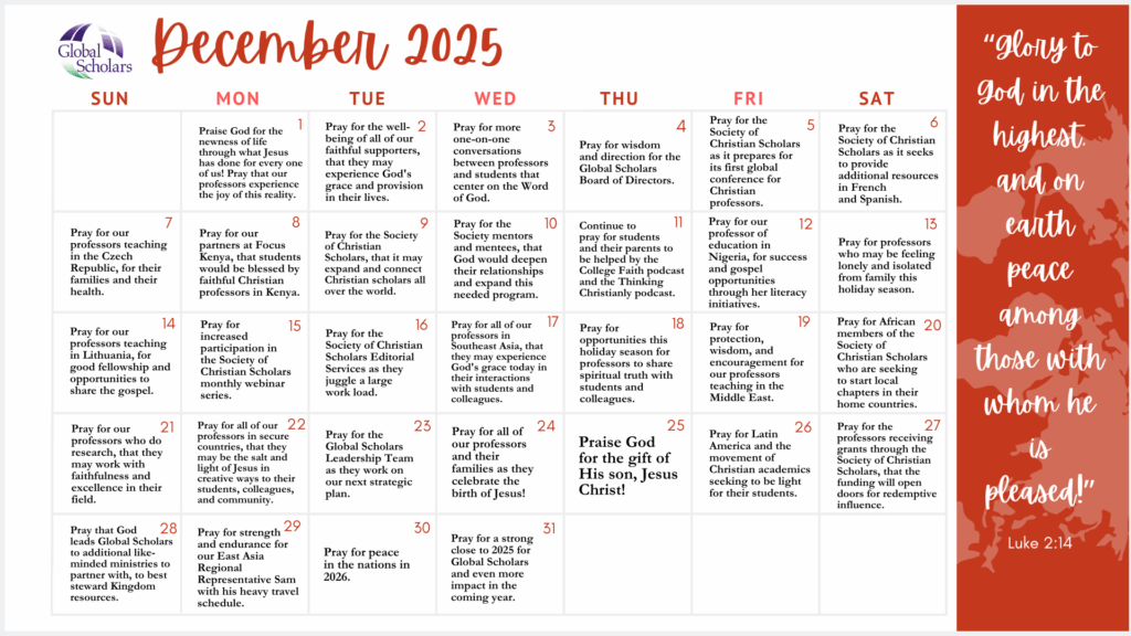 Prayer Calendar – December 2025