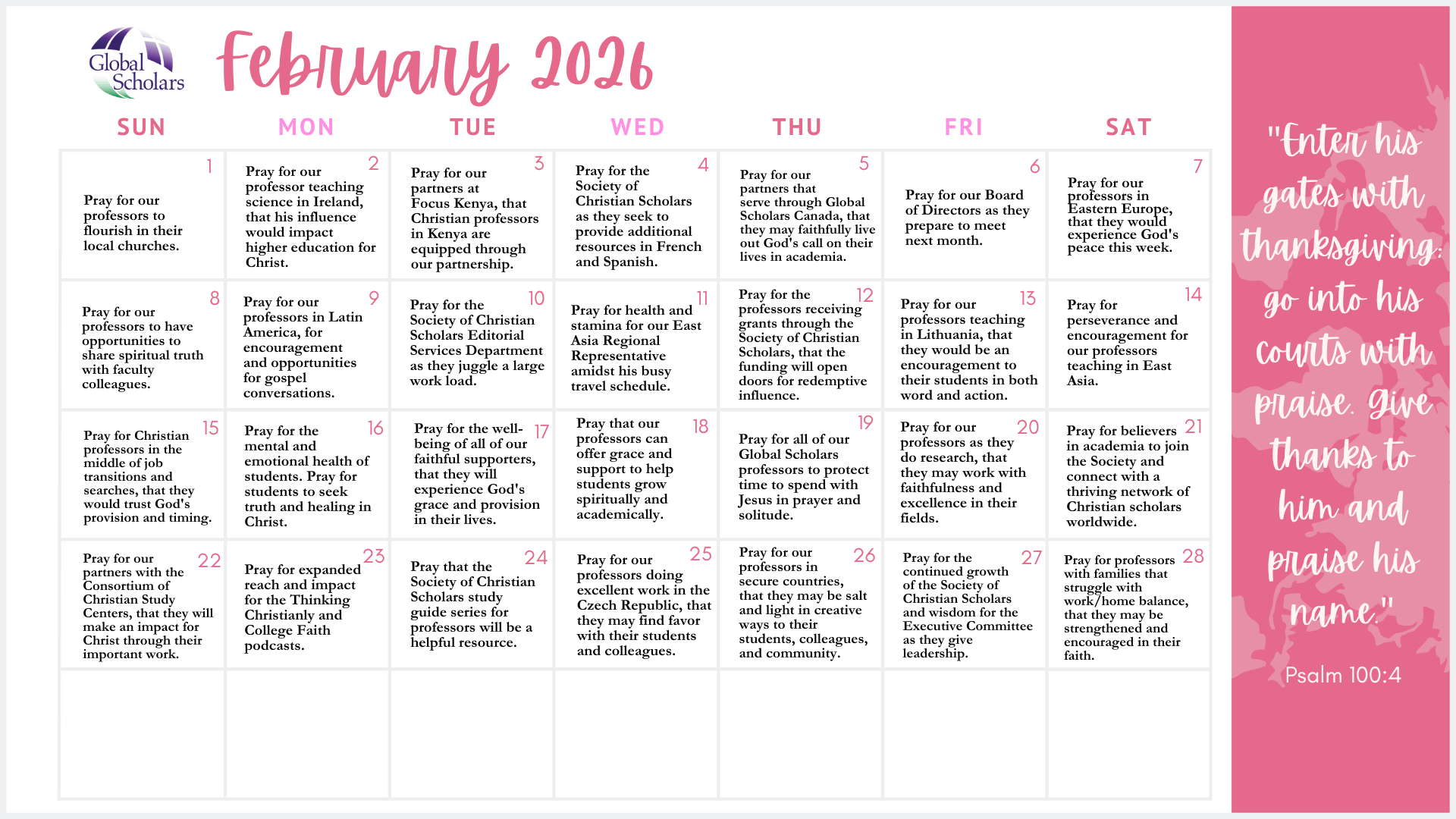 Prayer Calendar – February 2026